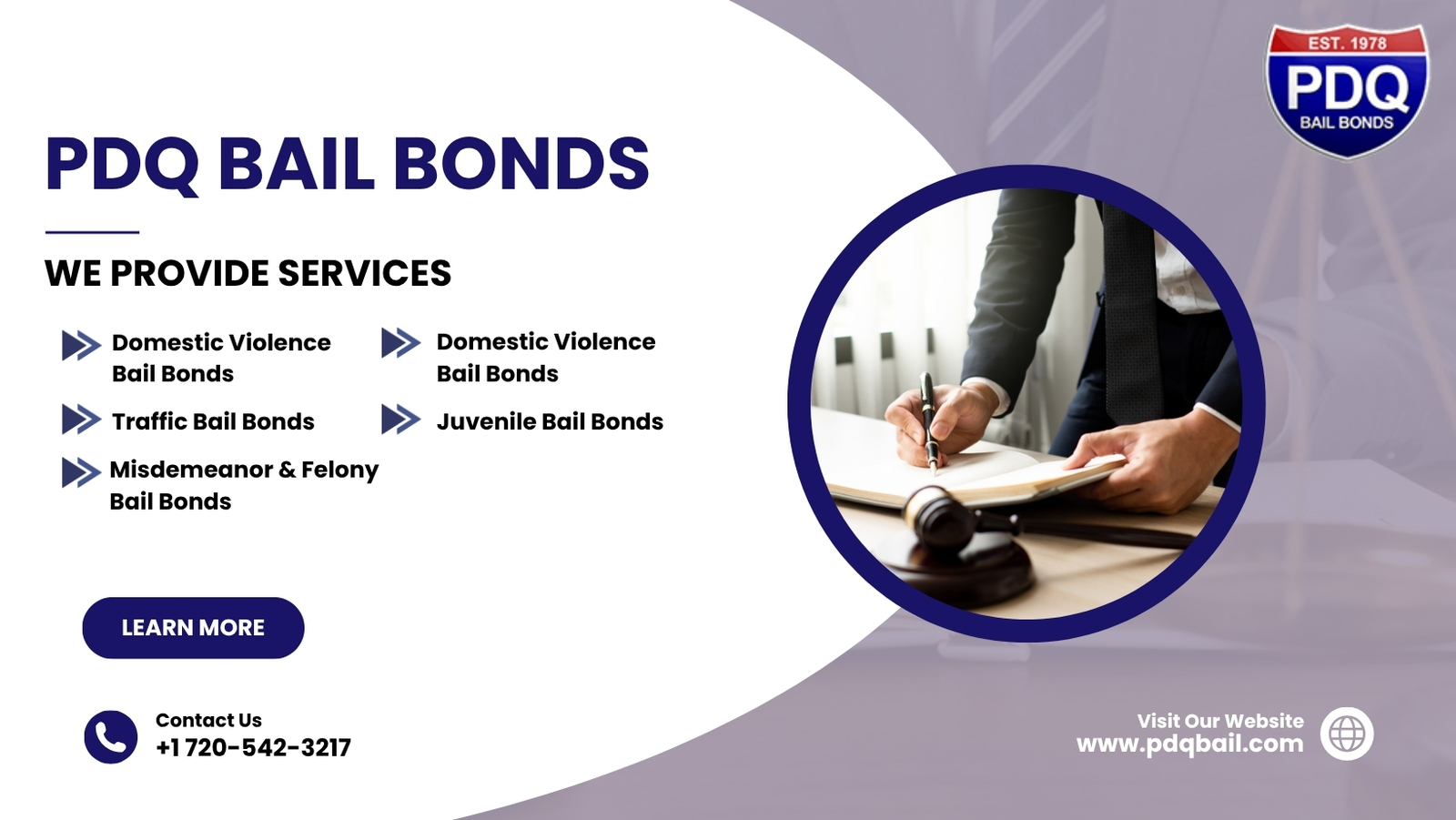 PDQ Bail Bonds has been assisting Colorado families with the bail process since 1978, providing quick and compassionate support. We are a family-owned, licensed bail company offering 24/7, fast, and confidential bail services in Denver, Aurora, and surrounding counties. Our services include traffic and DUI bonds, as well as juvenile, domestic violence, misdemeanor, and felony cases. Our bond agents are authorized to write bonds throughout Colorado (and in other states when required), and we simplify the process by allowing applications to be completed online. One of our agents then meets you at the jail and posts the bail in minutes. For immediate help, call 720-542-3217 or start your application at pdqbail.com.